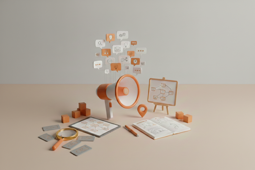 Alinhamento da comunicação institucional, coerência nos pontos de contato, conhecimento de mercado e público-alvo.